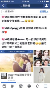 吳沛瑩是在珍琳蘇婚紗工作的peggy,因為婚紗界的peggy太多,但是吳沛瑩只有一個!歡迎進入吳沛瑩的婚紗創作世界